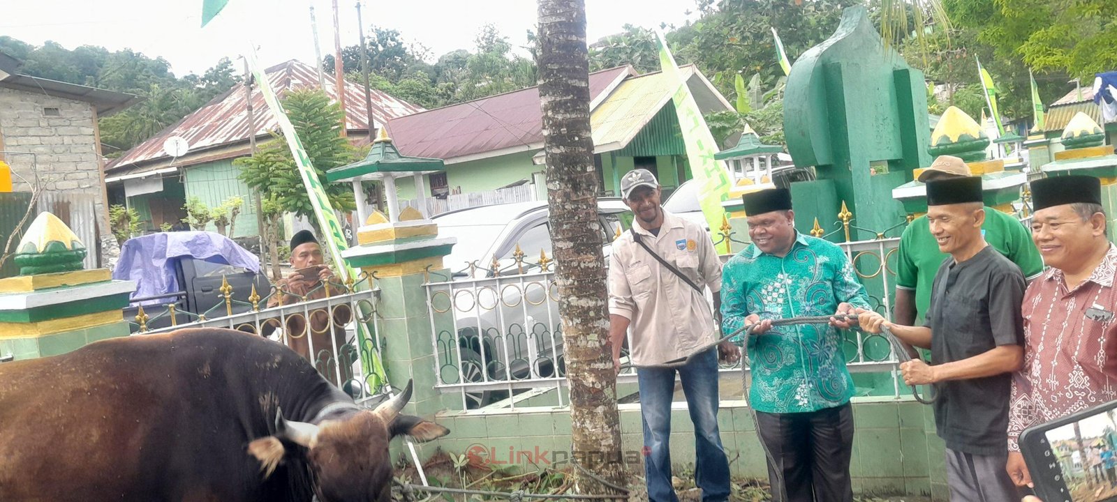 MANOKWARI, Linkpapua.com-Bupati Manokwari, Hermus Indou menyerahkan bantuan hewan kurban Pemerintah kabupaten Manokwari sebanyak 120 ekor sapi untuk masyarakat. Secara simbolis hewan kurban diserahkan di Masjid Al-Ikhlas Kodim 1801/Manokwari Minggu (16/6/2024).