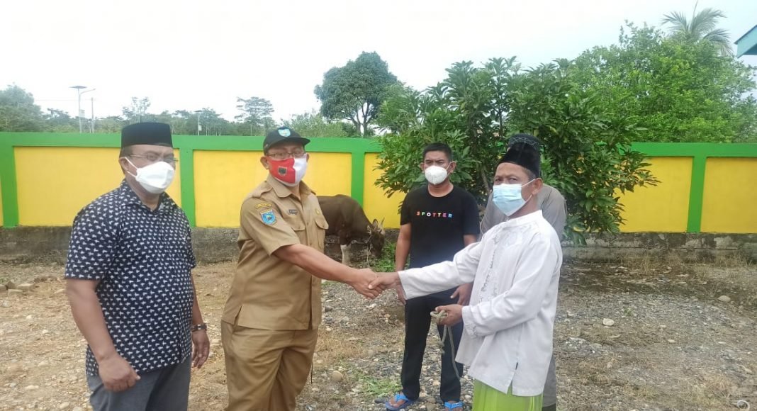 Penyerahan hewan kurban dilakukan secara simbolis oleh Pelaksana Tugas (Plt) Sekretaris Daerah (Sekda) Teluk Bintuni, I.B. Putu Suratna, di Masjid Al-Falaq, Kampung Wairaitama SP 1, Distrik Menimeri, Senin (19/7/2021).