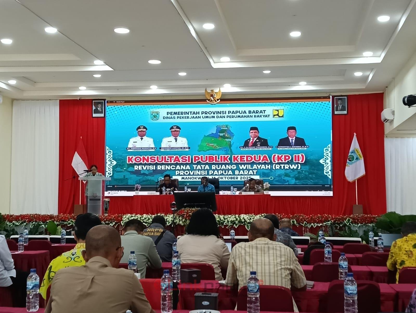 “Kami targetkan RTRW ini dapat disahkan menjadi peraturan daerah di tahun depan. Karena ini juga menyangkut kementerian yang harus masuk dalam daftar tunggu dari daerah-daerah lain,” ujar Plt Kepala Dinas PUPR Papua Barat Heribertus H Wiryawan dalam konsultasi publik (KP) II RTRW Papua Barat di Hotel Vitta Niu, Manokwari, Kamis (16/10/2025).