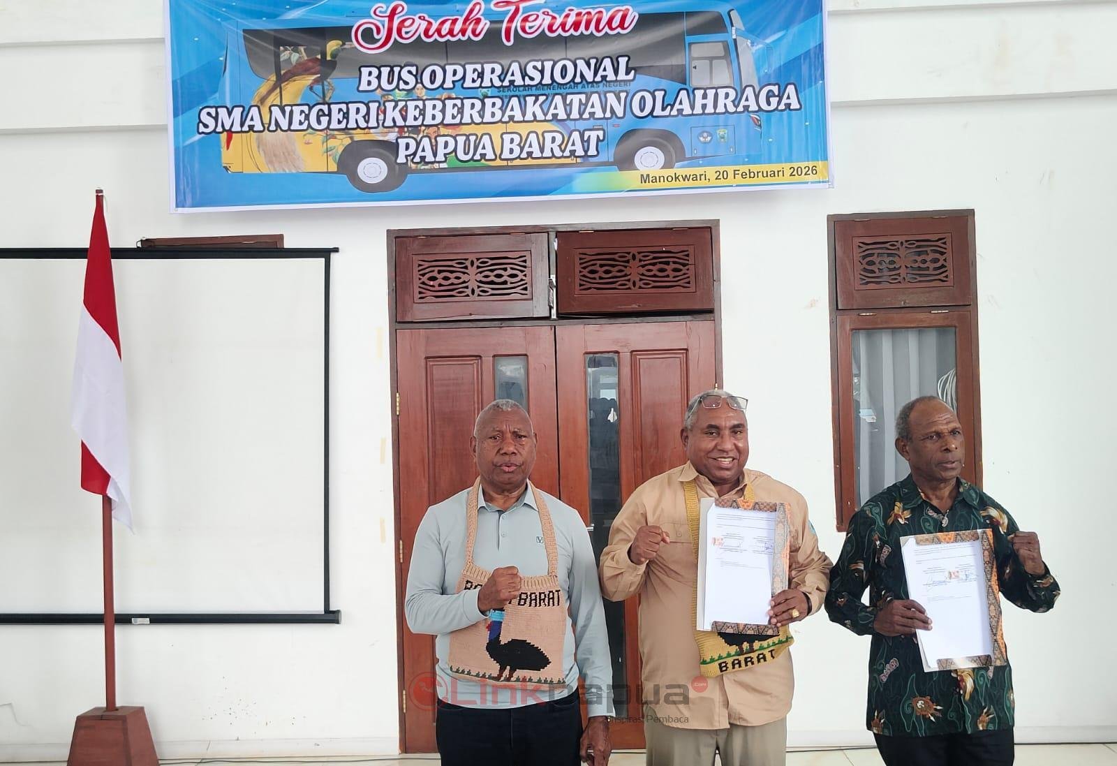 MANOKWARI, LinkPapua.id – Pemprov Papua Barat menyerahkan satu unit bus senilai Rp1,3 miliar untuk SMA Keberbakatan Olahraga Papua Barat di Kampung Susweni. Bus berkapasitas 40 penumpang itu disiapkan untuk menunjang mobilitas siswa dalam kegiatan belajar dan latihan.