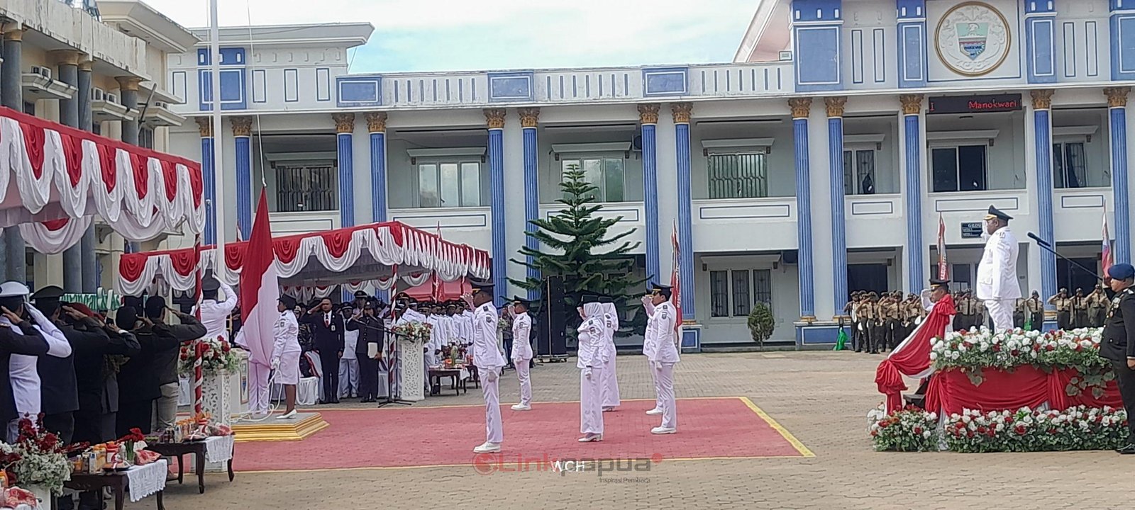 MANOKWARI, Linkpapua.com- Pemkab Manokwari menggelar upacara peringatan HUT Proklamasi Republik Indonesia ke 79 pada Sabtu (17/8/2024) di halaman kantor Bupati Manokwari. Tahun ini mengusung tema “Nusantara Baru, Indonesia Maju”.