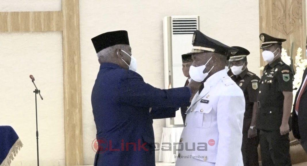 MANOKWARI, Linkpapua.com- Gubernur Papua Barat Dominggus Mandacan resmi melantik Wakil Bupati Maybrat Markus Jitmau di Gedung PKK Arfai, Jumat (8/4/2022). Dominggus berpesan agar wabup turut mendorong terselenggaranya pemerintahan yang bersih di Maybrat.