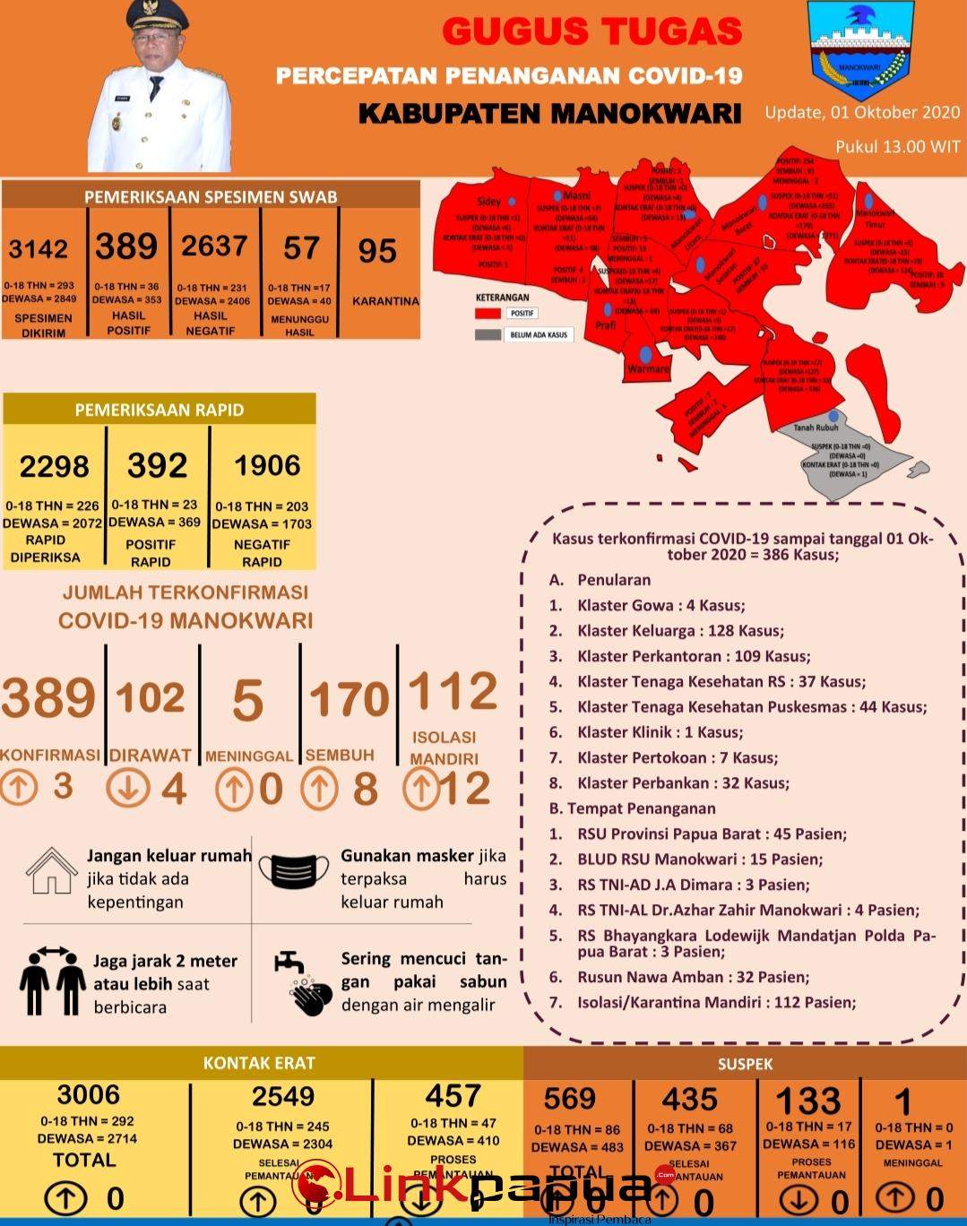 Sesuai pemberitahuan yang ditandatangani Direktur Badan Layanan Umum Daerah (BLUD) Rumah Sakit Umum (RSU) Manokwari, Yodi Kairupan, disebutkan bahwa jumlah petugas medis yang terkonfirmasi positif COVID-19 di rumah sakit tersebut terus meningkat.