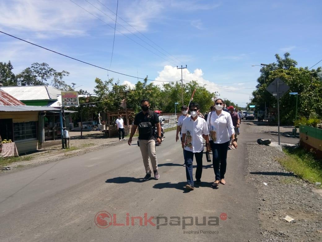 Wempi yang kompak dengan istri menggunakan kemeja putih terlihat berjalan kaki mendatangi TPS sekitar pukul 10.30 Wit, langsung dipersilahkan menggunakan hak pilihnya di bilik suara yang telah disediakan petugas KPPS.