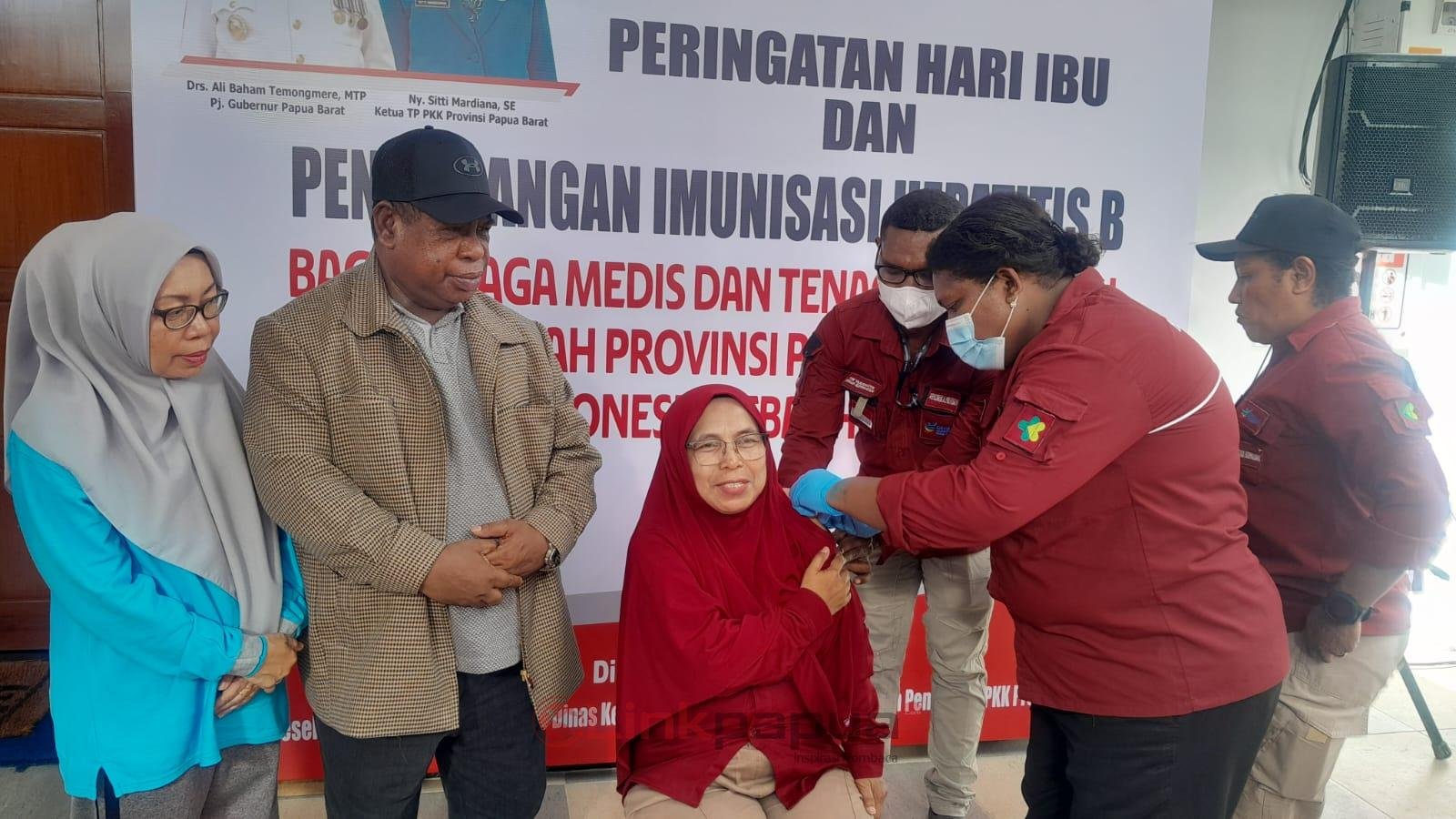 MANOKWARI, LinkPapua.com – Pj Gubernur Papua Barat, Ali Baham Temongmere, meluncurkan pencanangan imunisasi Hepatitis B bagi tenaga kesehatan (nakes) dan medis, Jumat (22/12/2022), di Rumah Gizi Papua Barat. Kegiatan dirangkaikan peringatan Hari Ibu ke-95 tahun 2023.