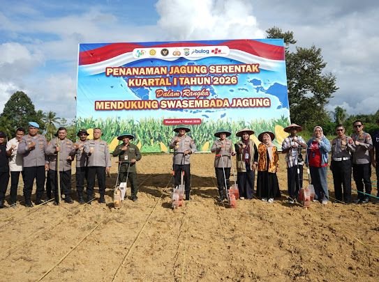 MANOKWARI, Linkpapua.id- Polda Papua Barat melaksanakan tanam raya jagung serentak bersama jajaran Polres di Papua Barat (07/02/2026).Kegiatan ini mendukung program ketahanan pangan nasional dan meningkatkan produksi pangan bersama masyarakat dan kelompok tani binaan Polri.