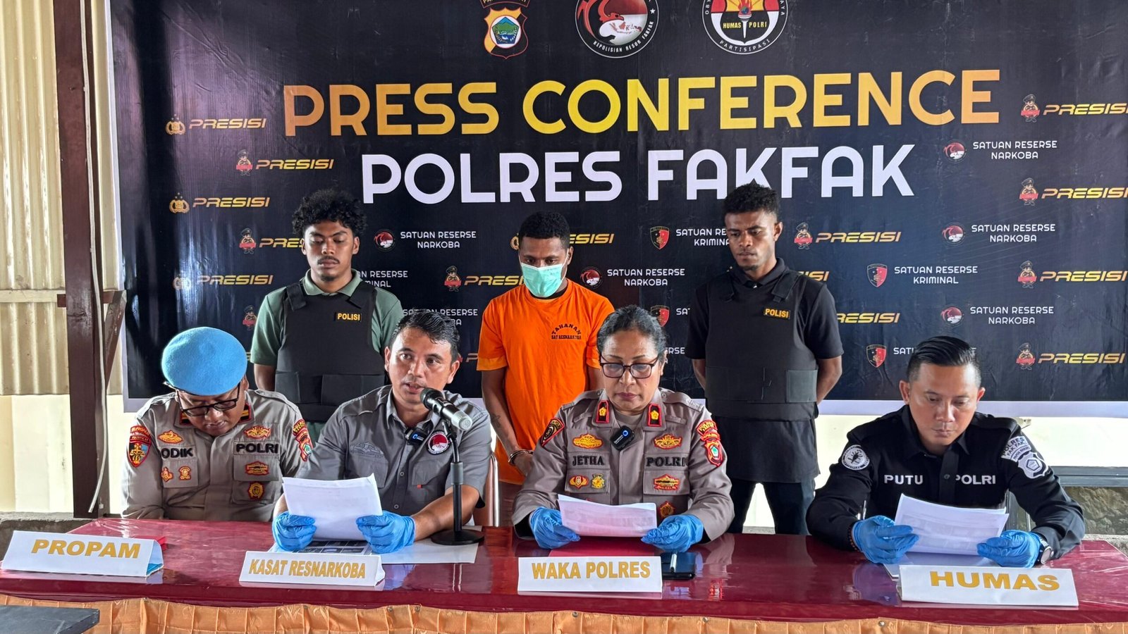 Acara konferensi pers dipimpin langsung oleh Wakapolres Fakfak Kompol Henderjetha H. Yassu, S.H., didampingi Kasat Resnarkoba IPTU Johan Eko Wahyudi, S.Sos., M.H., serta dihadiri oleh pejabat utama Polres Fakfak, antara lain Kasi Propam IPTU Dodik Junaidi, S.Sos., M.H. dan Kasi Humas IPTU I Putu Ajustya Sandivtha, S.H.