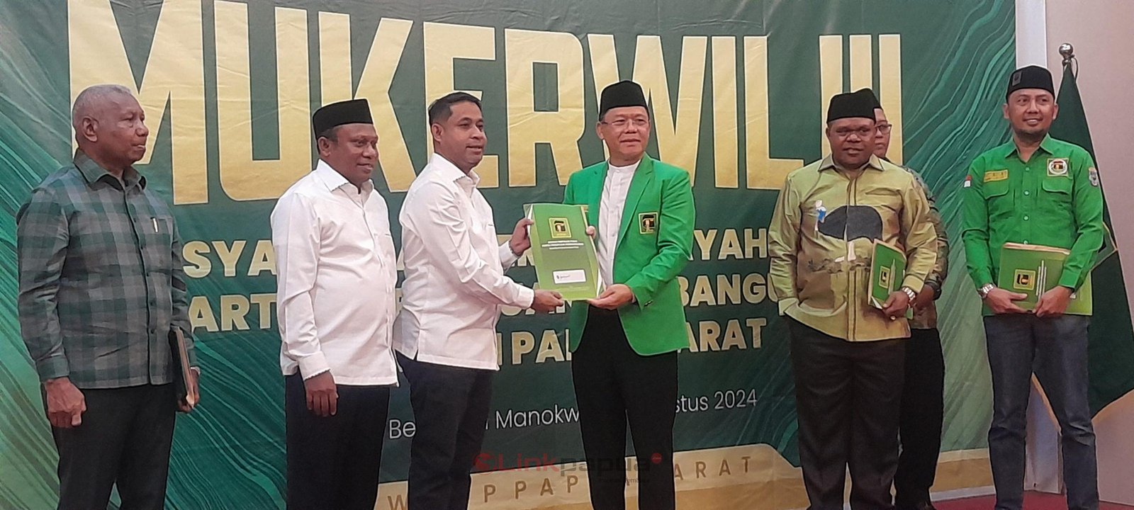 MANOKWARI, Linkpapua.com– DPW Partai Persatuan Pembangunan (PPP) Papua Barat menggelar Musyawarah Kerja Wilayah (Mukerwil) III pada Selasa (6/8/2024) di Manokwari yang dihadiri langsung oleh Plt Ketua Umum PPP Muhammad Mardiono.