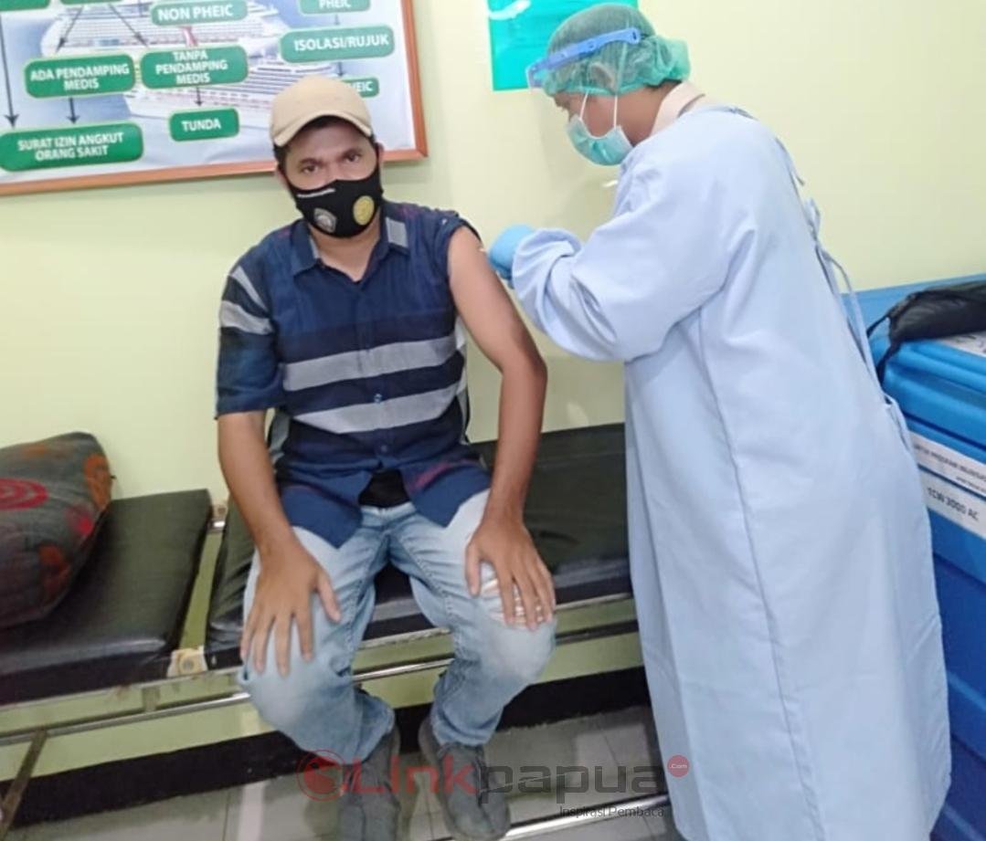 MANOKWARI,Linkpapuabarat.com-Puluhan wartawan dari berbagai media di Manokwari, menjalani vaksinasi Covid-19 dosis pertama, Kamis (4/3/2021) di Kantor Kesehatan Pelabuhan (KKP) Manokwari.