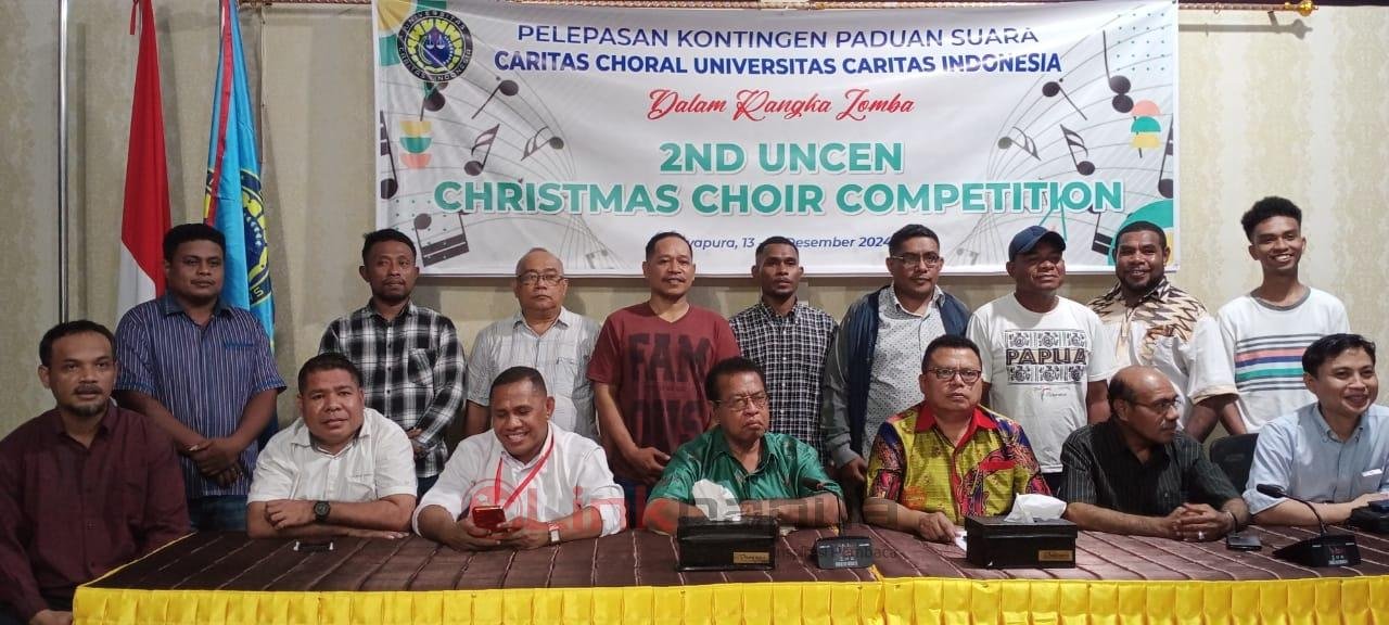MANOKWARI, Linkpapua.com- Rektor Universitas Caritas Indonesia (UNCRI) Manokwari Prof Robert KR. Hammar melepas tim paduan suara yang akan berlomba pada Kompetisi 2nd Uncen Christmas Choir Competition di Jayapura, Papua. Lomba akan berlangsung dari 13 hingga 14 Desember 2024.