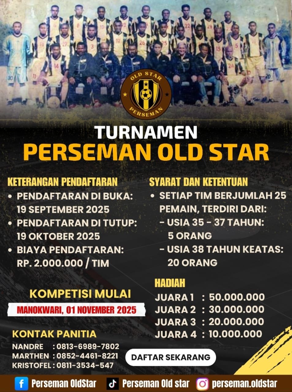 “Turnamen ini diundur hingga adanya pemberitahuan lebih lanjut. Keputusan ini berdasarkan sejumlah pertimbangan”,ujar Rumaikewi Sabtu (25/10/2025).