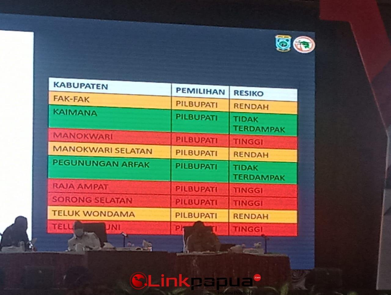 Manokwari-Empat daerah di Provinsi Papua Barat dinyatakan memiliki risiko tinggi penularan COVID-19 pada pemilihan kepala daerah (Pilkada) serentak tahun 2020.