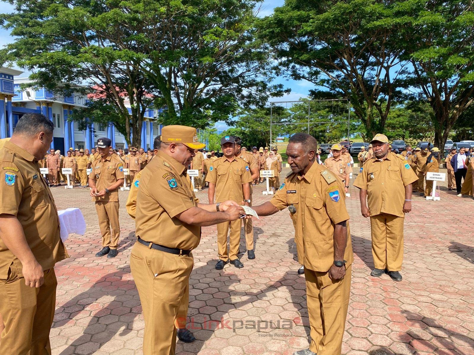 MANOKWARI, Linkpapua.com- Bupati Manokwari Hermus Indou menyerahkan kendaraan operasional kepada 164 kampung di Kabupaten Manokwari  pada Senin (2/6/2025) dihalaman kantor Bupati.