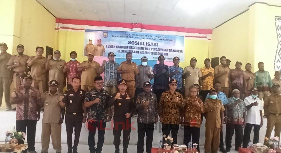 TELUK BINTUNI, Linkpapua.com – Dinas Pemberdayaan Masyarakat dan Kampung (DPMK) Teluk Bintuni bekerja sama Kejaksaan Negeri (Kejari) menggelar sosialisasi rumah keadilan restoratif dan pengawasan dana desa bagi aparat kampung dari 28 distrik di Teluk Bintuni.