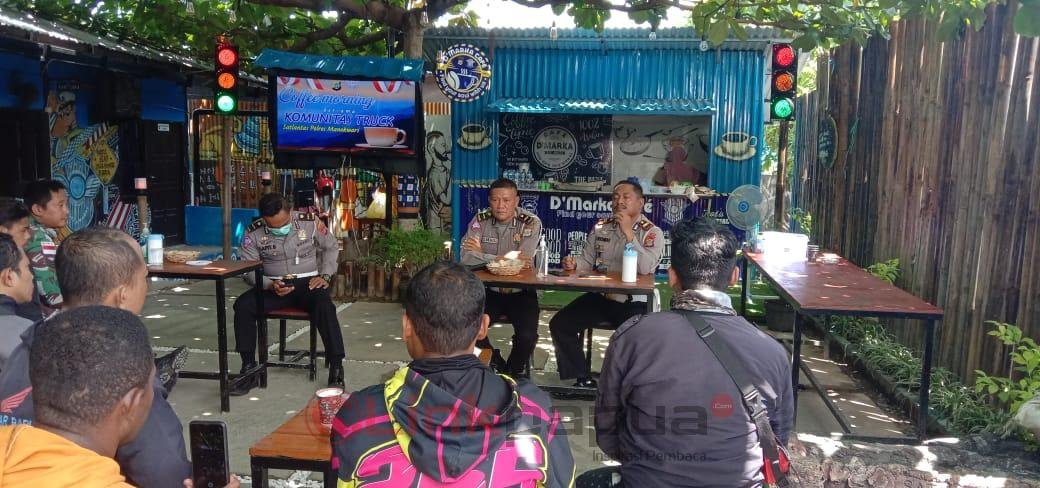 MANOKWARI, linkpapua.com- Satuan Lalu Lintas Polres Manokwari menggelar pertemuan rutin dengan komunitas pejasa truk dan ojek, Rabu (30/3/2022). Pertemuan ini membahas berbagai hal. Dari soal disiplin berlalu lintas hingga pelanggaran.