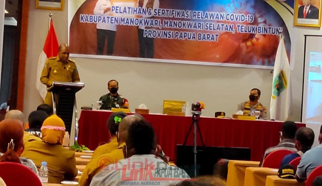 MANOKWARI,Linkpapuabarat.com-Satgas Penanganan Covid-19 Papua Barat menggelar Pelatihan dan Sertifikasi Relawan Covid-19 se-Papua Barat, di Hotel Swiss Bel, Senin 22 Maret 2021. Pelatihan ini bertujuan mencetak relawan yang memiliki kemampuan dalam penanganan Covid-19.