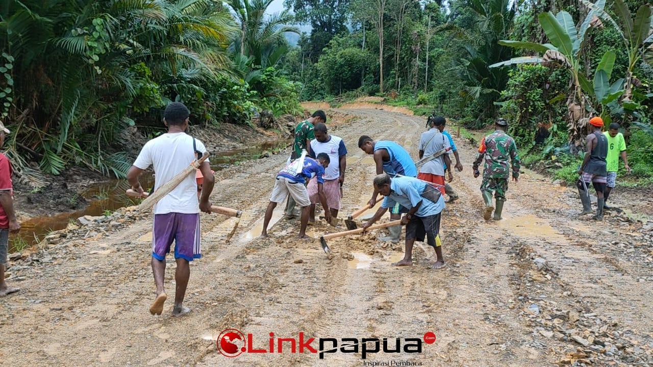 BINTUNI, Linkpapua.com – Program TNI Manunggal Membangun Desa (TMMD) Kodim 1806/Teluk Bintuni di Kampung Idoor, Distrik Wamesa, terus berlanjut hingga Jumat (18/6/2021).