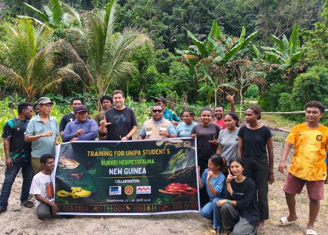 MANSEL, LinkPapua.id – Universitas Papua (UNIPA) menjalin kolaborasi dengan PT Freeport Indonesia dan Australian Museum untuk menggelar survei Herpetofauna New Guinea. Riset ilmiah ini melibatkan mahasiswa dalam program Training For Unipa Student’s yang mengambil lokasi di Hutan Alam Kampung Mambrema dan Yamboi Gunung, Distrik Ransiki, Kabupaten Manokwari Selatan (Mansel), Papua Barat.