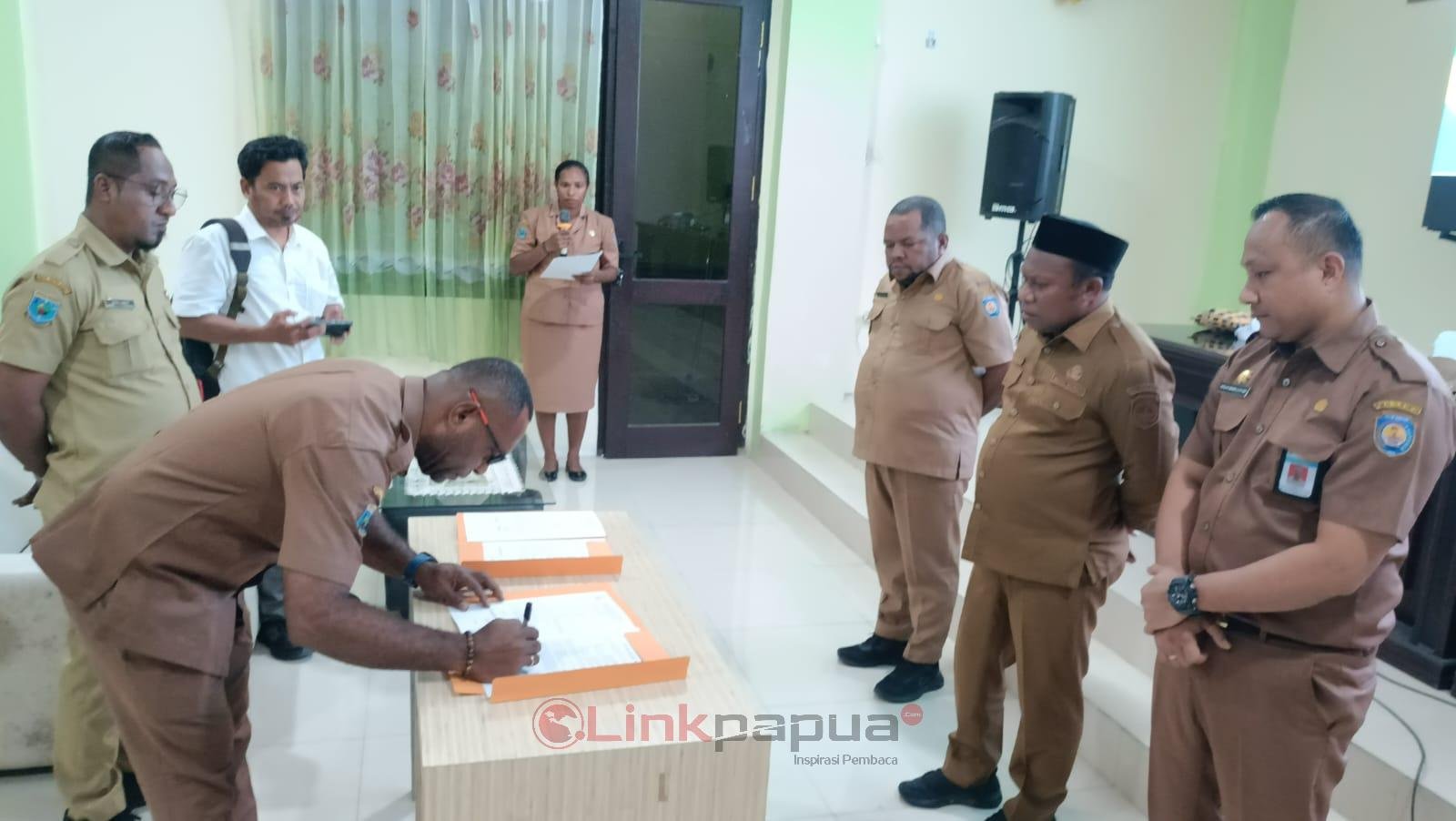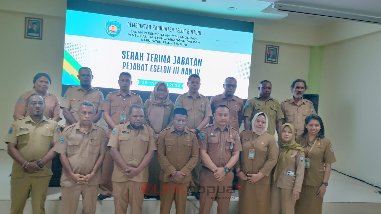 TELUK BINTUNI, LinkPapua.id – Wakil Bupati (Wabup) Teluk Bintuni, Joko Lingara, menghadiri serah terima jabatan (sertijab) pejabat administrator dan pengawas di lingkungan Bappelitbangda Teluk Bintuni. Dalam arahannya, Joko menekankan pentingnya kedisiplinan dan profesionalitas bagi para ASN yang baru dilantik.