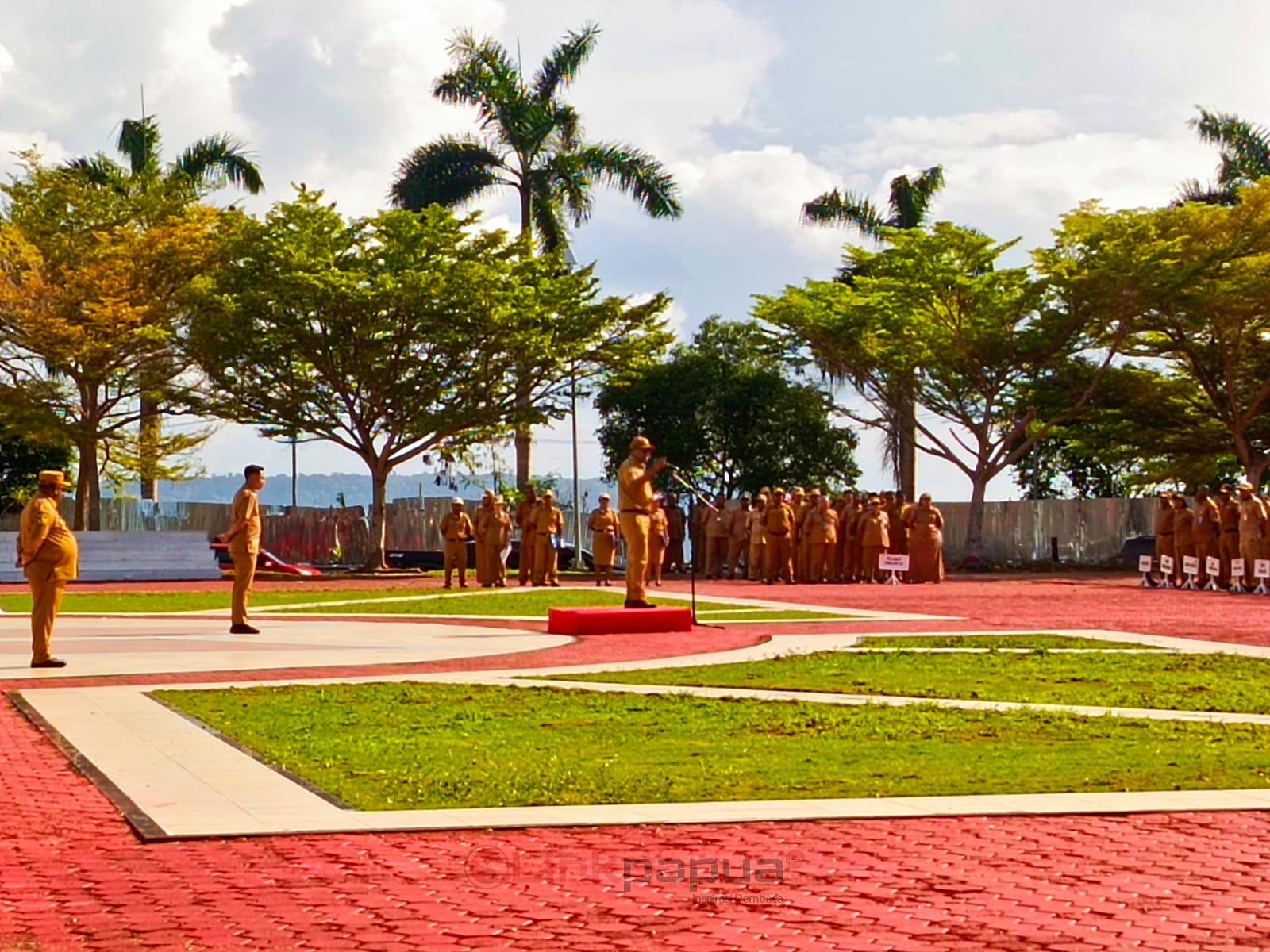 “Saya perhatikan di depan barisan ini masih ada OPD dengan 2-3 orang yang mengikuti apel. Disnakertrans ini hanya 3 orang yang lain ke mana, Dinas Dukcapil, Ketahanan Pangan, MRP, Dinas Sosial juga sangat sedikit kehadirannya. Kehadiran yang sedikit ini sangat mengganggu apalagi di barisan depan,” ujarnya saat memimpin apel gabungan di Kantor Gubernur, Senin (20/10/2025).