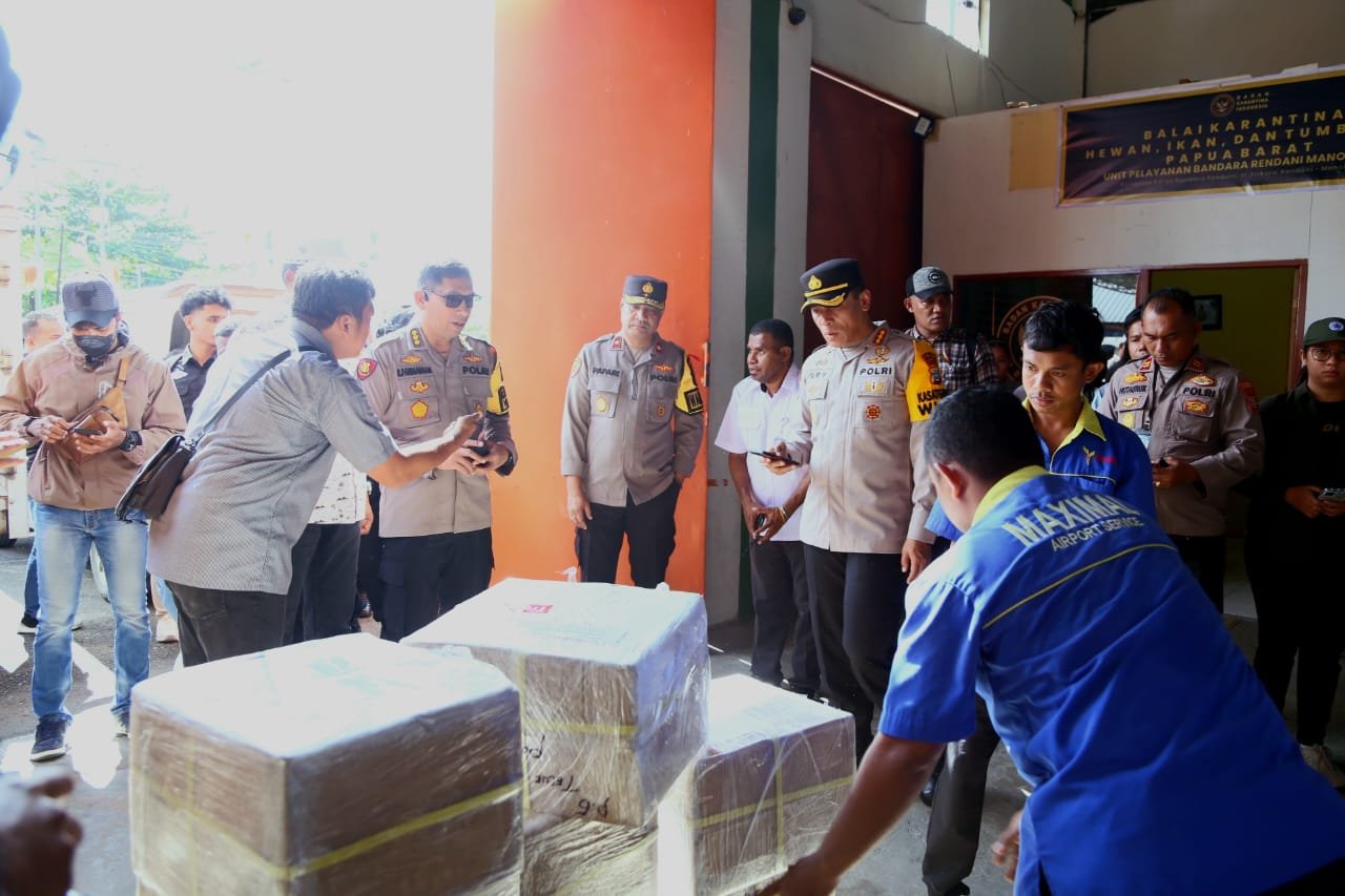 “Hari ini surat suara dikirim dari Jakarta, untuk kabupaten Fakfak dan Kaimana dikirim melalui Kota Sorong, untuk 5 kabupaten lain datang di Bandara Rendani langsung digeser ke masing – masing kabupaten, sedangkan surat suara PSUnya nanti disimpan di KPU Provinsi” ujar Kombes Pol. Robertus A. Pandiangan, S.I.K.,M.H.